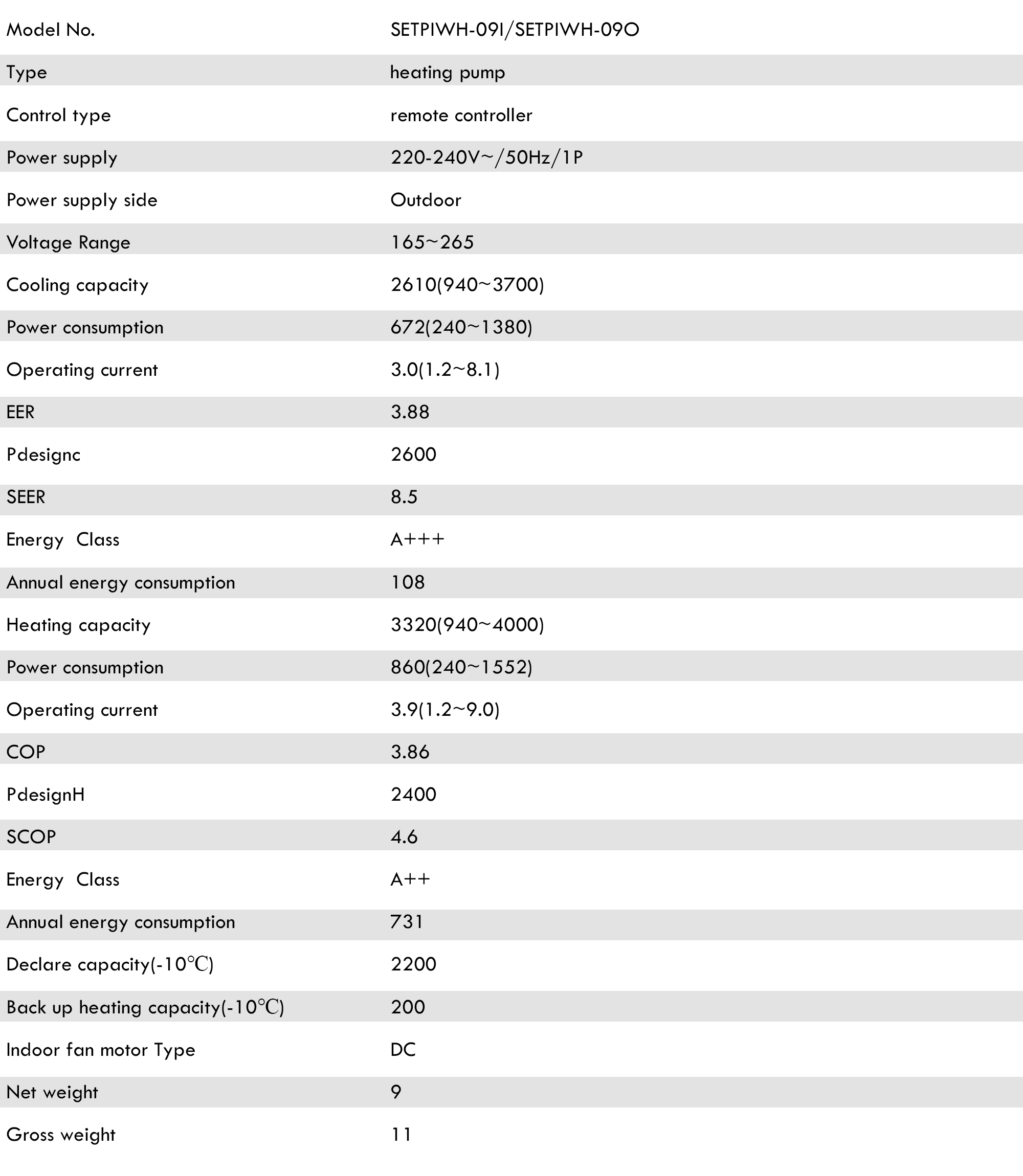 The ZenithV8 A++ Mono Series features Split Type air conditioners with both Cooling & Heating functionality, all designed for the T1 Climate type. They all utilize the environmentally friendlier R32 refrigerant and operate on a 230V/50HZ power supply, with the power supply mode being Outdoor. Control is handled via Remote.